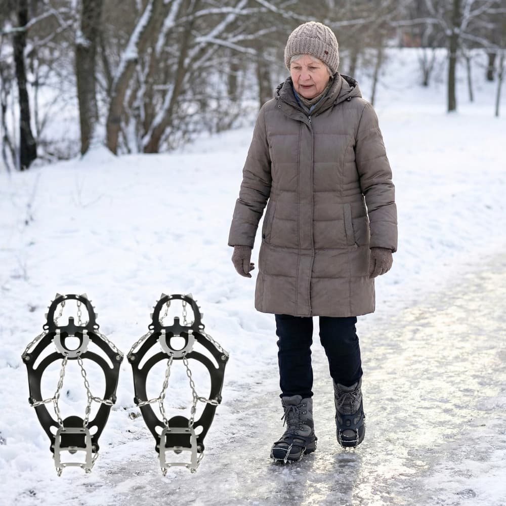 Die Grödel bestehen aus hochwertigem, widerstandsfähigem TPE-Gummi und rostfreiem Premium-Manganstahl.