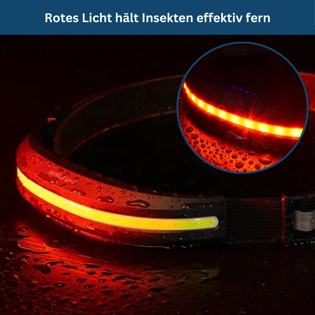 Die Stirnlampe ist mit einer roten Lichtfunktion ausgestattet, die deine Nachtsicht bewahrt und gleichzeitig Insekten fernhält.