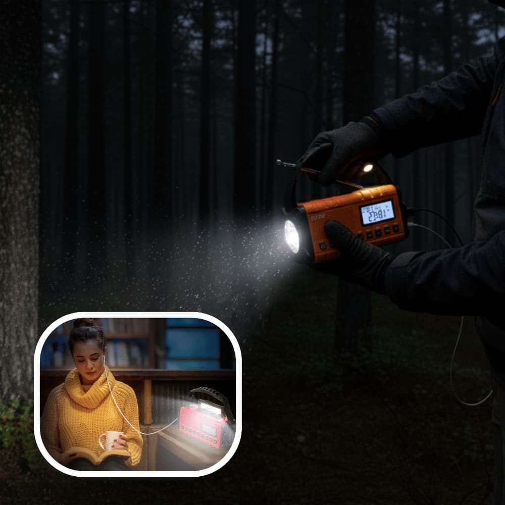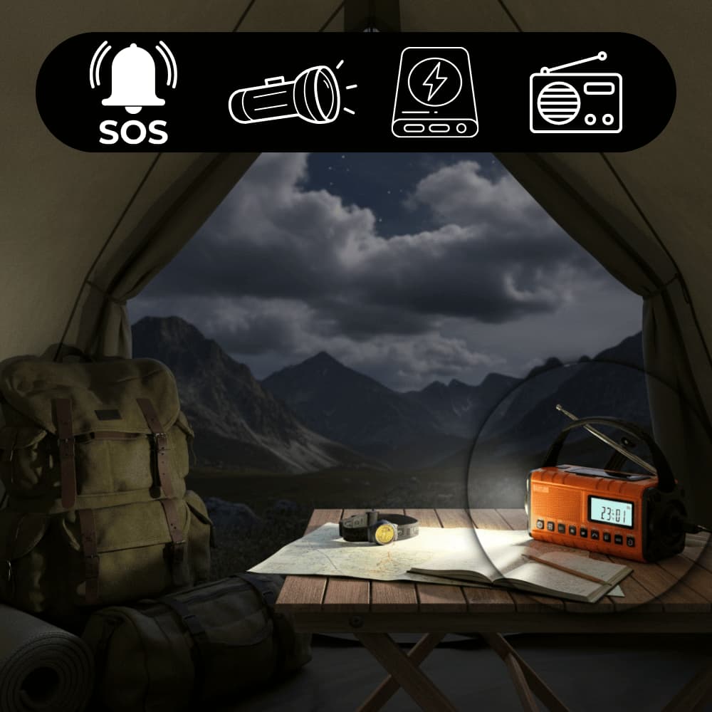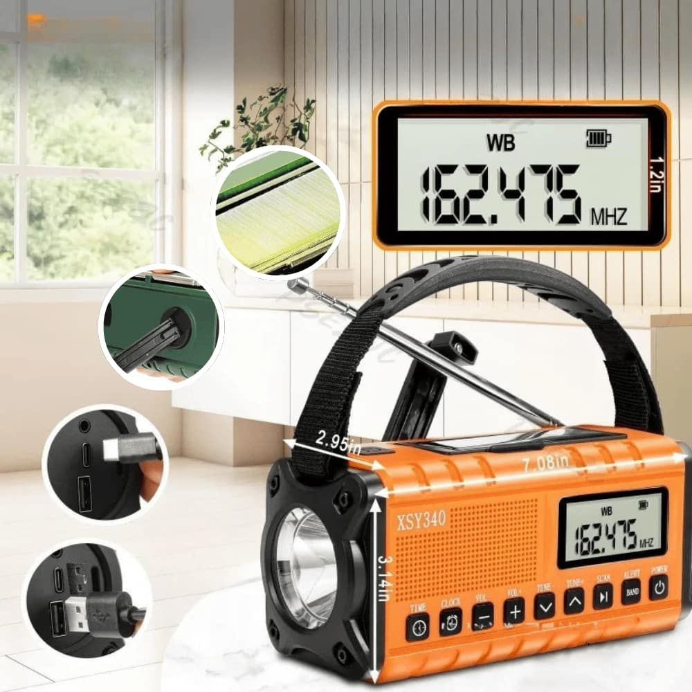 Es empfängt AM, FM und NOAA Signale, auch in abgelegenen Regionen, unabhängig von Internet oder Strom. So bleibst du jederzeit über Nachrichten und Wetterwarnungen informiert